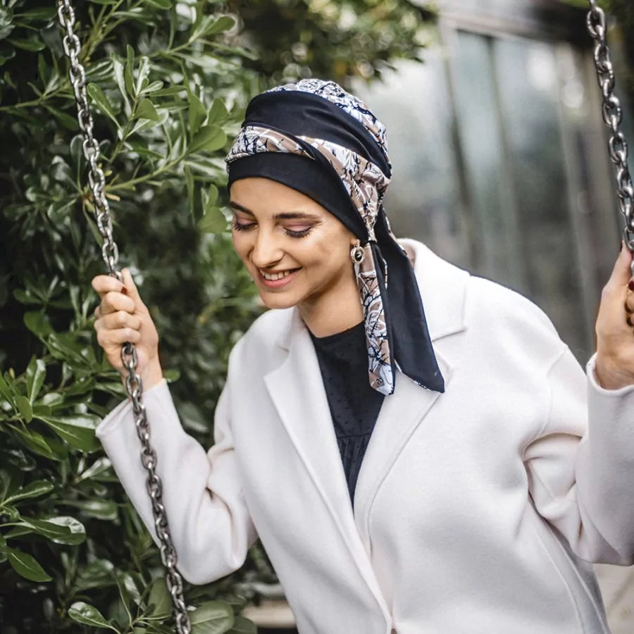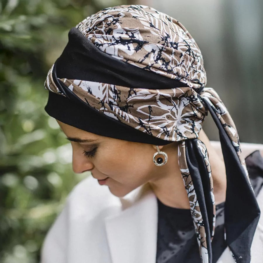 El pañuelo oncológico Smooth Paint Flowers de la colección otoño-invierno de Carebell Headwear ofrece una solución textil eficaz, pensada para personas que enfrentan alopecia o pérdida de cabello por tratamientos oncológicos. Fabricado en algodón certificado, está diseñado para proporcionar un ajuste seguro y comodidad prolongada.